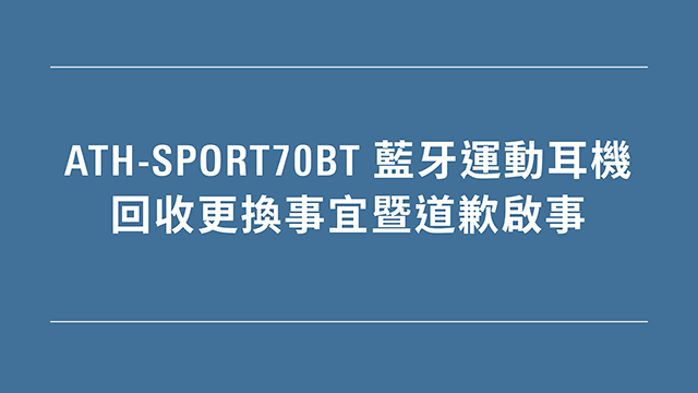 產品回收更換通知|ATH-SPORT70BT 藍牙運動耳機回收更換事宜暨道歉啟事